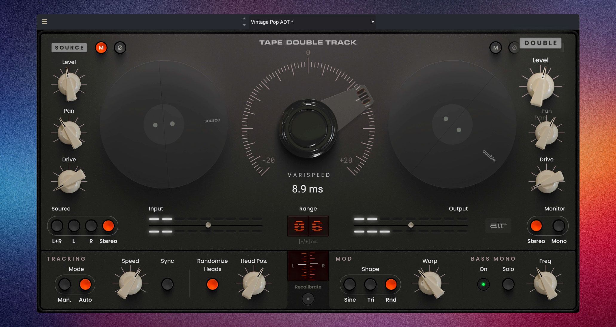 “Really been digging the AIR Tape Double Track plugin in my mixing workflow. It’s now my first call for doubling up vocals. It produces a retro-future vibe, giving width and drive to a wide variety of tracks. The interface gives a ton of options...way deeper than any other tape machine emulator I've tried.”