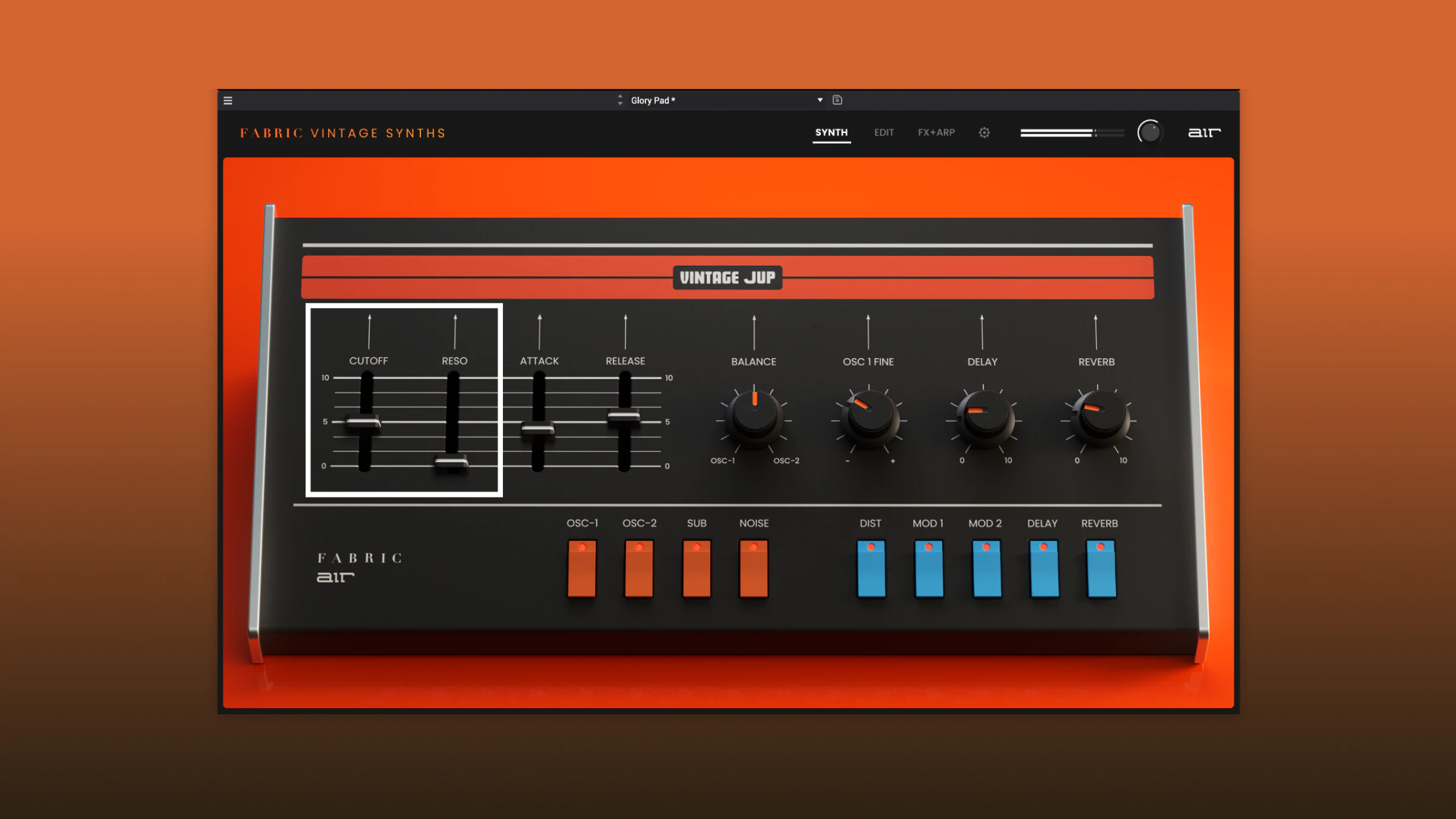Explore and experiment with an extensive library of sounds. Fabric Vintage Jup comes packed with studio-quality presets covering basses, pads, leads, sequences, and cinematic textures.
